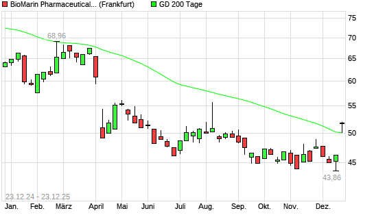 Mit dem Anstieg auf 51,80 EUR hat die BioMarin Pharmaceutical-Aktie am 22.12.2025 die 200-Tage-Linie nach oben gekreuzt.