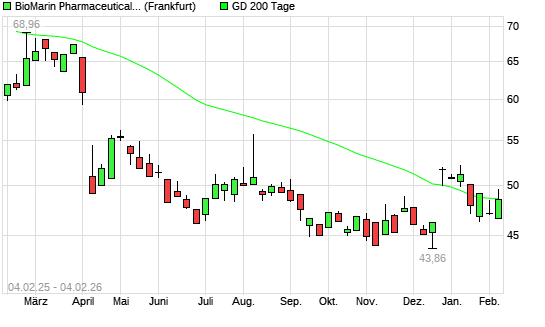 Mit dem Anstieg auf 49,60 EUR hat die BioMarin Pharmaceutical-Aktie am 03.02.2026 die 200-Tage-Linie nach oben gekreuzt.