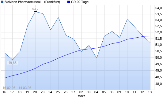Mit dem Rücksetzer auf 51,16 EUR hat die BioMarin Pharmaceutical-Aktie am 13.03.2026 die 20-Tage-Linie nach unten gekreuzt.