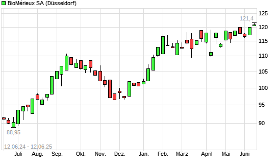 Mit dem Anstieg auf 121,60 EUR hat die BioMérieux SA-Aktie (ISIN FR0013280286) am 11.06.2025 ein neues 3-Jahres-Hoch erreicht und damit den Kurs vom 10.06.2025 eingestellt.Die BioMérieux SA-Aktie ...weiterlesen