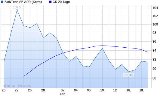 Mit dem Anstieg auf 93,55 EUR hat die BioNTech-Aktie am 19.02.2026 die 20-Tage-Linie nach oben gekreuzt.