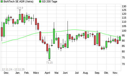 Mit dem Anstieg auf 94,65 EUR hat die BioNTech-Aktie am 11.11.2025 die 200-Tage-Linie nach oben gekreuzt.
