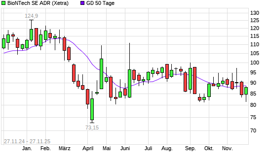Mit dem Anstieg auf 89,00 EUR hat die BioNTech-Aktie am 26.11.2025 die 50-Tage-Linie nach oben gekreuzt.