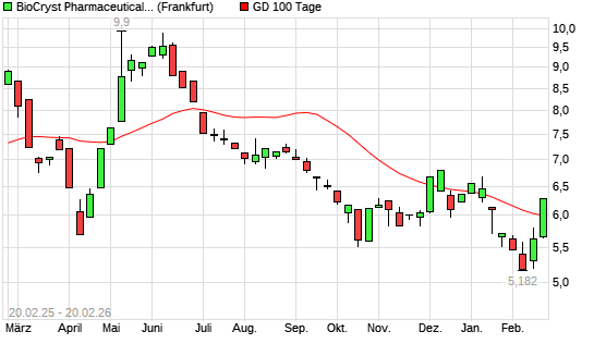 Mit dem Anstieg auf 6,07 EUR hat die Biocryst Pharmaceuticals-Aktie am 19.02.2026 die 100-Tage-Linie nach oben gekreuzt.