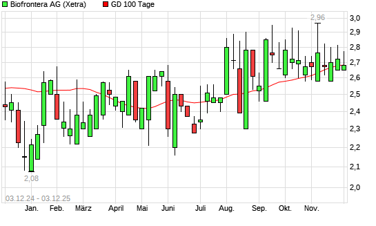 Mit dem Anstieg auf 2,60 EUR hat die Biofrontera-Aktie am 02.12.2025 die 100-Tage-Linie nach oben gekreuzt.