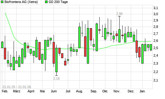 Mit dem Anstieg auf 2,61 EUR hat die Biofrontera-Aktie am 20.01.2026 die 200-Tage-Linie nach oben gekreuzt.