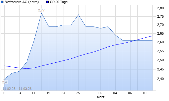 Mit dem Rücksetzer auf 2,48 EUR hat die Biofrontera-Aktie am 10.03.2026 die 20-Tage-Linie nach unten gekreuzt.