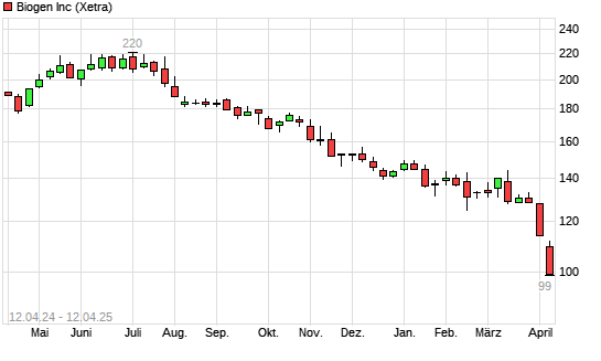 Mit dem Rücksetzer auf 99,82 EUR hat die Biogen-Aktie (ISIN US09062X1037) am 11.04.2025 ein neues 10-Jahres-Tief erreicht und damit den Kurs vom 09.04.2025 eingestellt.