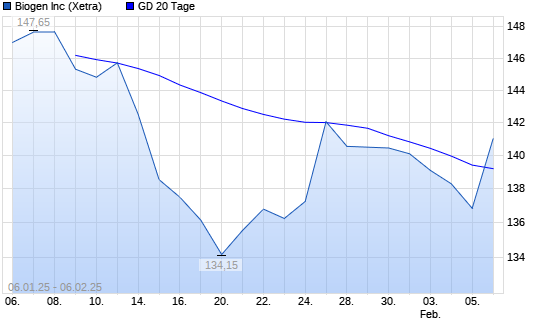 Mit dem Anstieg auf 139,25 EUR hat die Biogen-Aktie am 05.02.2025 die 20-Tage-Linie nach oben gekreuzt.