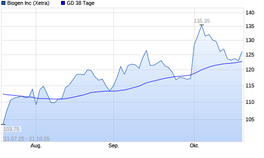 Mit dem Anstieg auf 126,85 EUR hat die Biogen-Aktie am 20.10.2025 die 38-Tage-Linie nach oben gekreuzt.