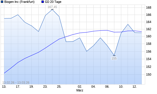 Mit dem Rücksetzer auf 161,05 EUR hat die Biogen-Aktie am 12.03.2026 die 20-Tage-Linie nach unten gekreuzt.