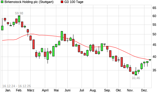 Mit dem Anstieg auf 39,00 EUR hat die Birkenstock Holding-Aktie am 15.12.2025 die 100-Tage-Linie nach oben gekreuzt.