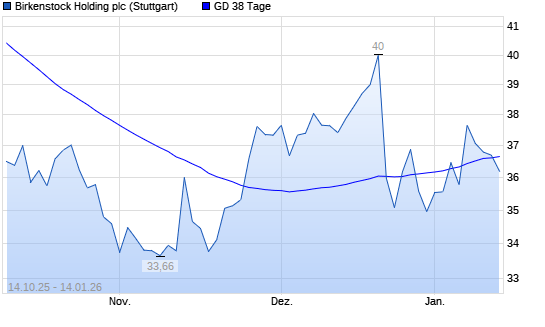 Mit dem Rücksetzer auf 36,50 EUR hat die Birkenstock Holding-Aktie am 13.01.2026 die 38-Tage-Linie nach unten gekreuzt.