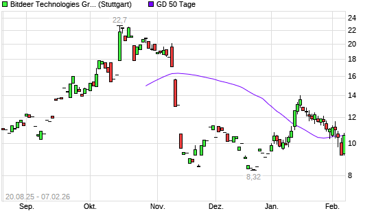 Mit dem Anstieg auf 10,40 EUR hat die Bitdeer Technologies Group-Aktie am 06.02.2026 die 50-Tage-Linie nach oben gekreuzt.