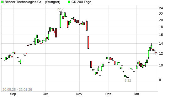 Mit dem Rücksetzer auf 11,90 EUR hat die Bitdeer Technologies Group-Aktie am 21.01.2026 die 200-Tage-Linie nach unten gekreuzt.