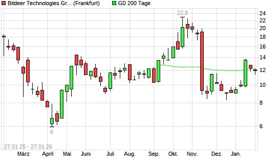 Mit dem Rücksetzer auf 11,90 EUR hat die Bitdeer Technologies Group-Aktie am 26.01.2026 die 200-Tage-Linie nach unten gekreuzt.