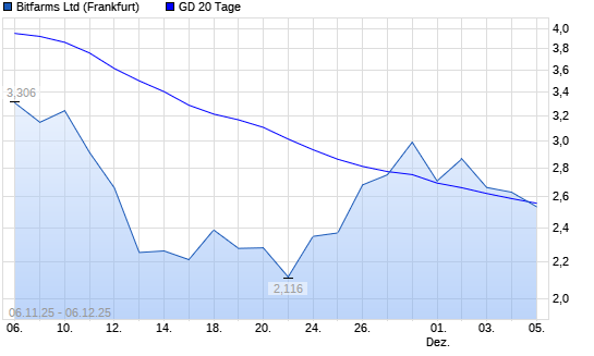 Mit dem Rücksetzer auf 2,53 EUR hat die Bitfarms-Aktie am 05.12.2025 die 20-Tage-Linie nach unten gekreuzt.