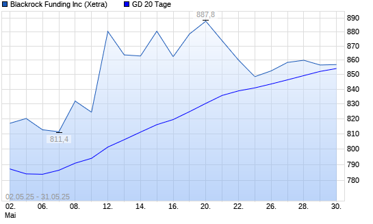 Mit dem Rücksetzer auf 854,30 EUR hat die BlackRock-Aktie am 30.05.2025 die 20-Tage-Linie nach unten gekreuzt.