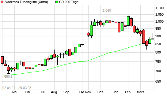 Mit dem Rücksetzer auf 872,90 EUR hat die BlackRock-Aktie am 28.03.2025 die 200-Tage-Linie nach unten gekreuzt.