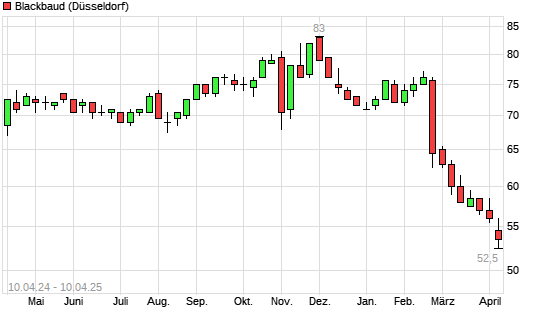 Mit dem Rücksetzer auf 53,50 EUR hat die Blackbaud-Aktie (ISIN US09227Q1004) am 09.04.2025 ein neues 12-Monats-Tief erreicht und damit den Kurs vom 07.04.2025 eingestellt.