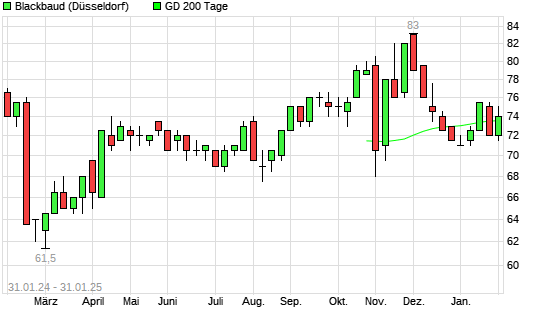 Mit dem Anstieg auf 74,00 EUR hat die Blackbaud-Aktie am 30.01.2025 die 200-Tage-Linie nach oben gekreuzt.