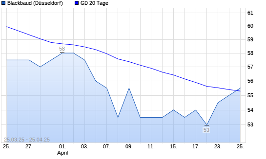 Mit dem Rücksetzer auf 54,50 EUR hat die Blackbaud-Aktie am 24.04.2025 die 20-Tage-Linie nach unten gekreuzt.