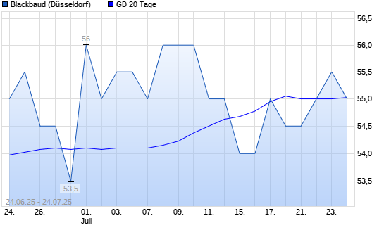 Mit dem Rücksetzer auf 54,50 EUR hat die Blackbaud-Aktie am 23.07.2025 die 20-Tage-Linie nach unten gekreuzt.