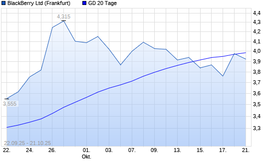 Mit dem Anstieg auf 3,98 EUR hat die Blackberry-Aktie am 20.10.2025 die 20-Tage-Linie nach oben gekreuzt.