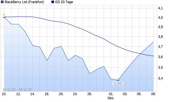 Mit dem Anstieg auf 3,69 EUR hat die Blackberry-Aktie am 08.12.2025 die 20-Tage-Linie nach oben gekreuzt.