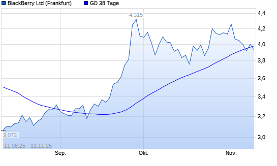 Mit dem Anstieg auf 4,00 EUR hat die Blackberry-Aktie am 10.11.2025 die 38-Tage-Linie nach oben gekreuzt.