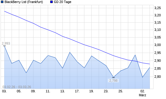 Mit dem Rücksetzer auf 2,80 EUR hat die Blackberry-Aktie am 02.03.2026 die 20-Tage-Linie nach unten gekreuzt.