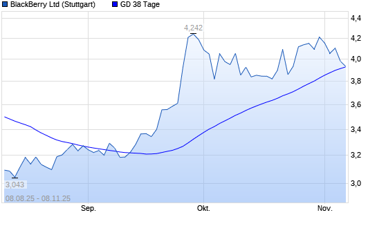 Mit dem Rücksetzer auf 3,92 EUR hat die Blackberry-Aktie am 07.11.2025 die 38-Tage-Linie nach unten gekreuzt.