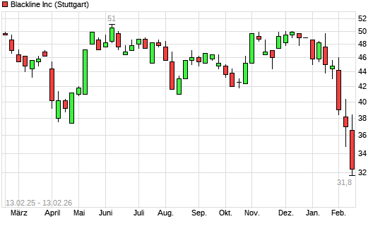 Mit dem Rücksetzer auf 32,40 EUR hat die Blackline-Aktie (ISIN US09239B1098) am 12.02.2026 ein neues 5-Jahres-Tief erreicht und damit den Kurs vom 11.02.2026 eingestellt.