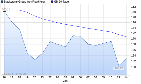 Mit dem Rücksetzer auf 160,56 EUR hat die Blackstone-Aktie am 13.01.2025 die 20-Tage-Linie nach unten gekreuzt.
