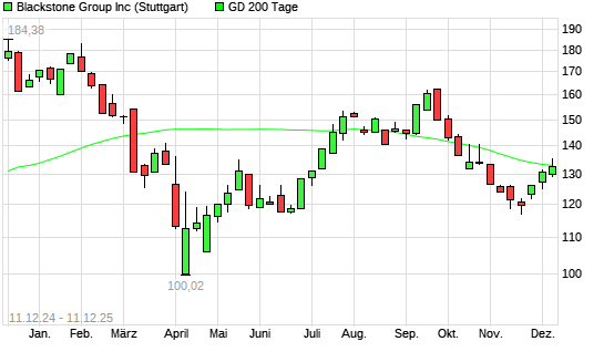 Mit dem Rücksetzer auf 130,04 EUR hat die Blackstone-Aktie am 10.12.2025 die 200-Tage-Linie nach unten gekreuzt.