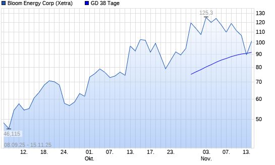 Mit dem Anstieg auf 97,94 EUR hat die Bloom Energy A-Aktie am 14.11.2025 die 38-Tage-Linie nach oben gekreuzt.