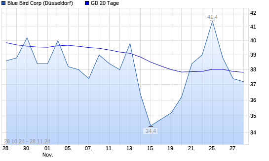 Mit dem Anstieg auf 38,20 EUR hat die Blue Bird-Aktie am 27.11.2024 die 20-Tage-Linie nach oben gekreuzt.