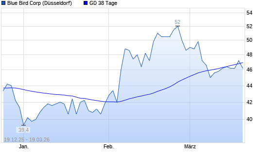 Mit dem Anstieg auf 46,20 EUR hat die Blue Bird-Aktie am 18.03.2026 die 38-Tage-Linie nach oben gekreuzt.