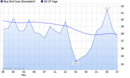 Mit dem Rücksetzer auf 36,20 EUR hat die Blue Bird-Aktie am 26.11.2024 die 20-Tage-Linie nach unten gekreuzt.