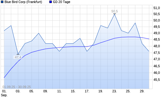 Mit dem Rücksetzer auf 48,20 EUR hat die Blue Bird-Aktie am 29.09.2025 die 20-Tage-Linie nach unten gekreuzt.