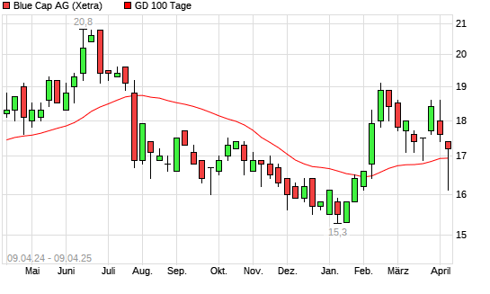Mit dem Anstieg auf 16,90 EUR hat die Blue Cap-Aktie am 08.04.2025 die 100-Tage-Linie nach oben gekreuzt.