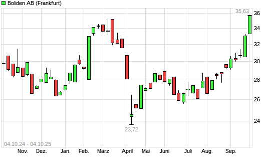 Mit dem Anstieg auf 35,63 EUR hat die Boliden AB-Aktie (ISIN SE0020050417) am 03.10.2025 ein neues 12-Monats-Hoch erreicht und damit den Kurs vom 02.10.2025 eingestellt.