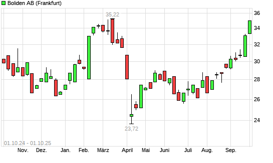 Mit dem Anstieg auf 34,81 EUR hat die Boliden AB-Aktie (ISIN SE0020050417) am 30.09.2025 ein neues 6-Monats-Hoch erreicht und damit den Kurs vom 29.09.2025 eingestellt.