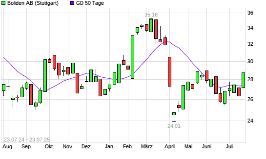 Mit dem Anstieg auf 27,81 EUR hat die Boliden AB-Aktie am 22.07.2025 die 50-Tage-Linie nach oben gekreuzt.