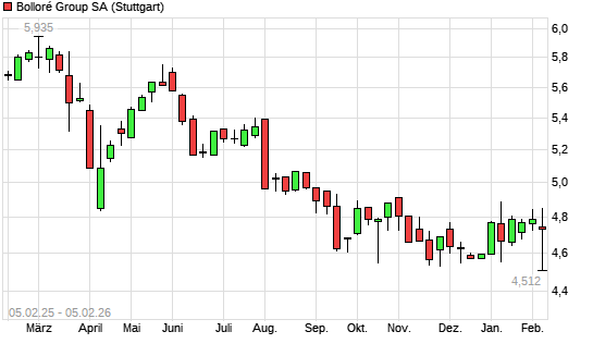 Mit dem Rücksetzer auf 4,51 EUR hat die Bollore-Aktie (ISIN FR0000039299) am 04.02.2026 ein neues 3-Jahres-Tief erreicht und damit den Kurs vom 24.11.2025 eingestellt.