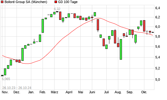 Mit dem Anstieg auf 5,86 EUR hat die Bollore-Aktie am 25.10.2024 die 100-Tage-Linie nach oben gekreuzt.