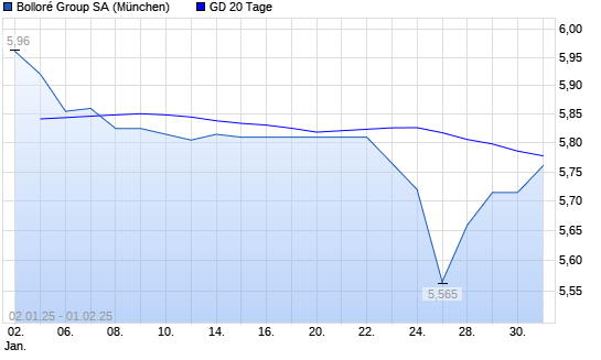 Mit dem Anstieg auf 5,76 EUR hat die Bollore-Aktie am 31.01.2025 die 20-Tage-Linie nach oben gekreuzt.
