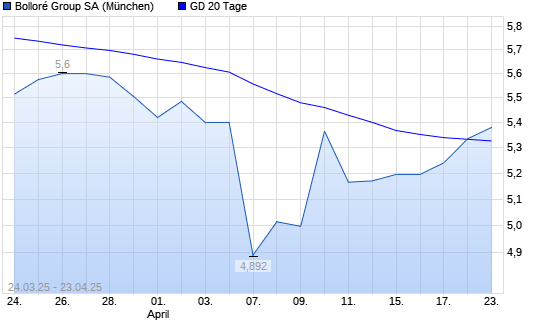 Mit dem Anstieg auf 5,45 EUR hat die Bollore-Aktie am 22.04.2025 die 20-Tage-Linie nach oben gekreuzt.