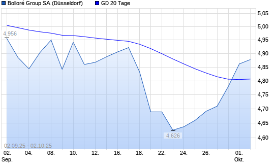 Mit dem Anstieg auf 4,81 EUR hat die Bollore-Aktie am 01.10.2025 die 20-Tage-Linie nach oben gekreuzt.