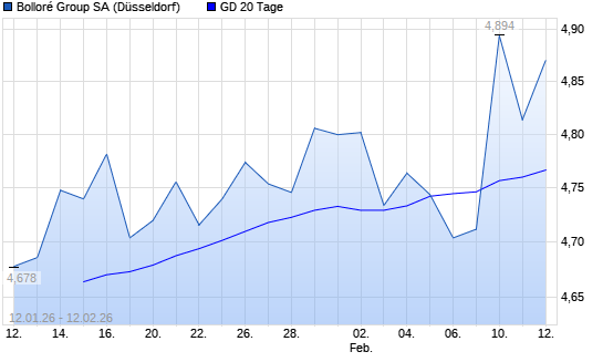 Mit dem Anstieg auf 4,86 EUR hat die Bollore-Aktie am 11.02.2026 die 20-Tage-Linie nach oben gekreuzt.